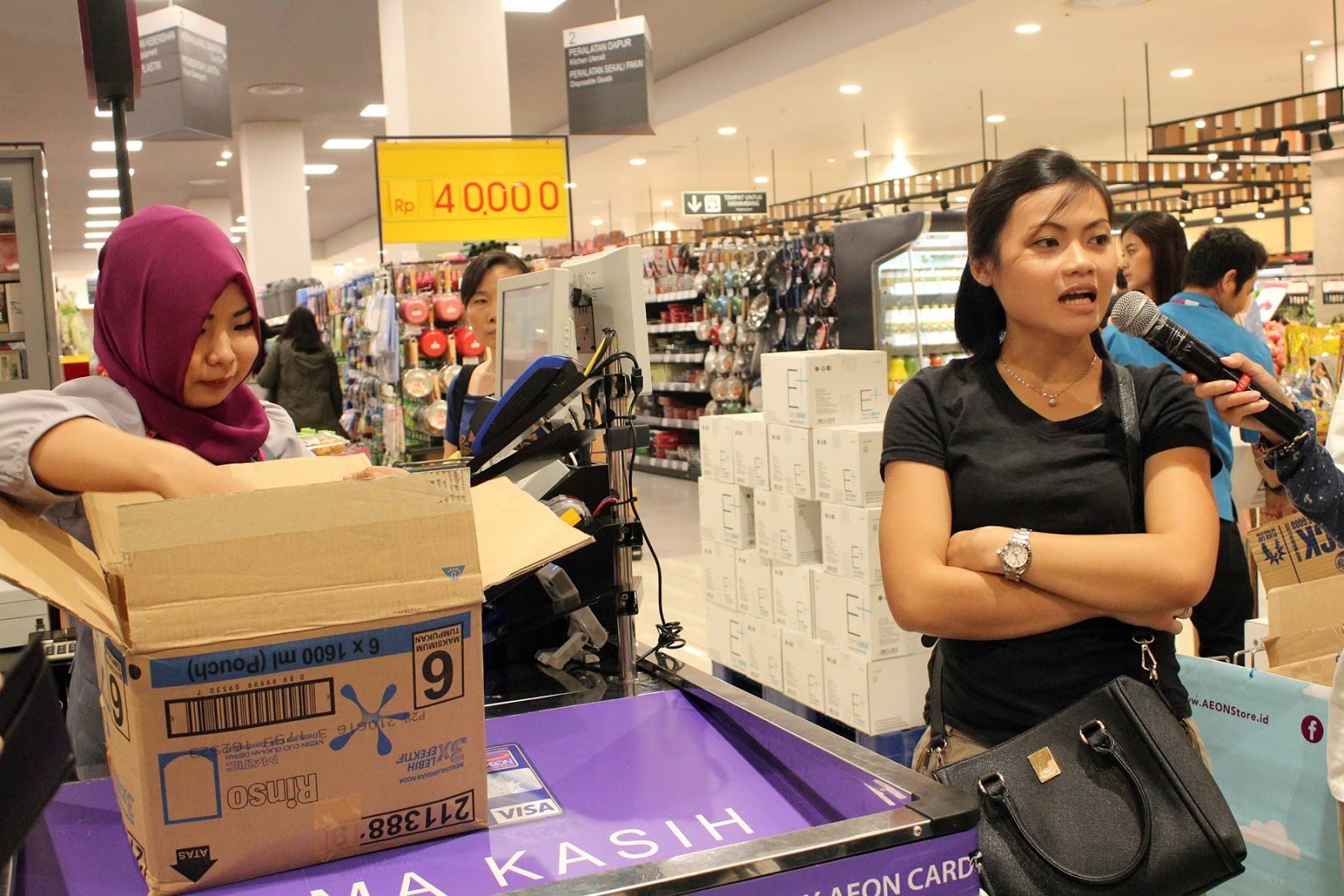 Pengunjung AEON Store ini lebih suka menggunakan kardus